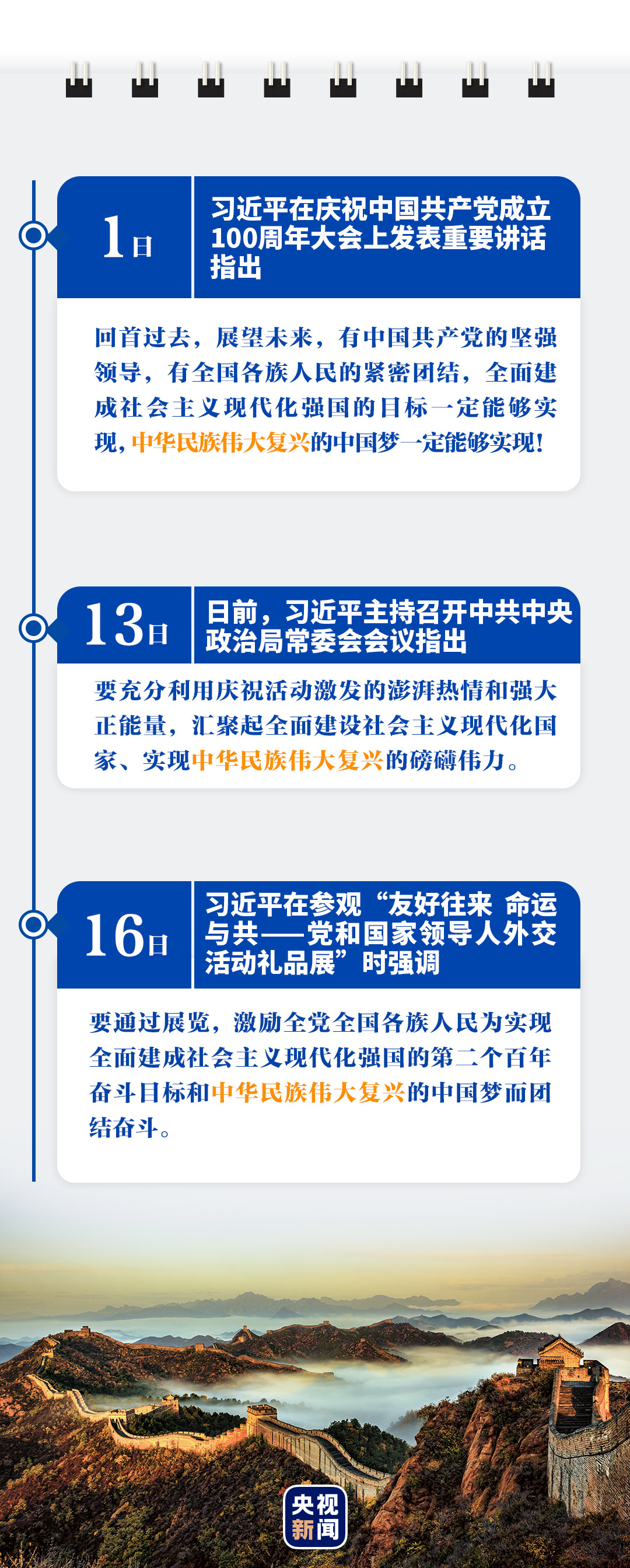 “這一百年來(lái)開(kāi)辟的偉大道路、創(chuàng)造的偉大事業(yè)、取得的偉大成就,必將載入中華民族發(fā)展史冊(cè)、人類(lèi)文明發(fā)展史冊(cè)!”總書(shū)記的話語(yǔ)擲地有聲。