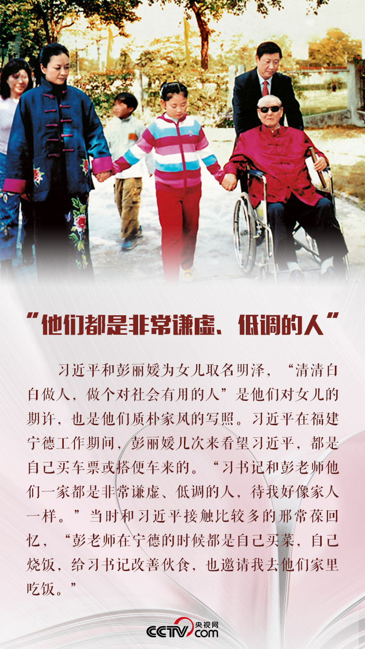 孝敬父母、愛(ài)護(hù)妻兒,習(xí)近平把家庭看得很重。他曾在接受媒體采訪時(shí)說(shuō),“我有一個(gè)很幸福的家庭,夫妻倆都有自己的事業(yè),但是對(duì)家庭都是共同去建設(shè)這個(gè)家庭。”