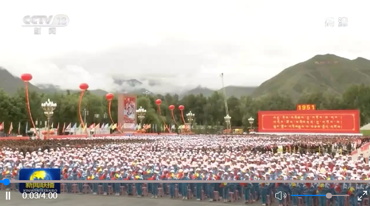 上午10時,西藏自治區(qū)黨委副書記、自治區(qū)人民政府主席齊扎拉宣布大會開始。全場起立,奏唱國歌,鮮艷的五星紅旗在布達拉宮廣場冉冉升起。
