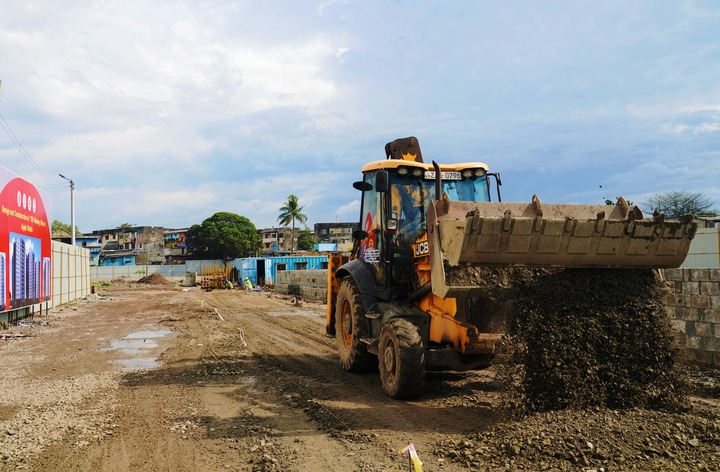 在斯里蘭卡科倫坡,挖掘機在保障房項目現(xiàn)場進行施工(1月14日攝)。由中國企業(yè)承建的亞洲基礎設施投資銀行(亞投行)在斯里蘭卡的首個保障房項目2020年11月3日在科倫坡北部郊區(qū)破土動工。新華社記者 唐璐 攝