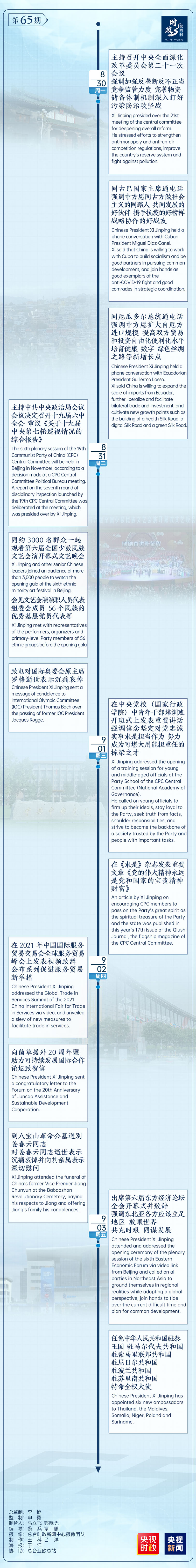 時(shí)政微周刊丨總書記的一周(8月30日—9月5日)