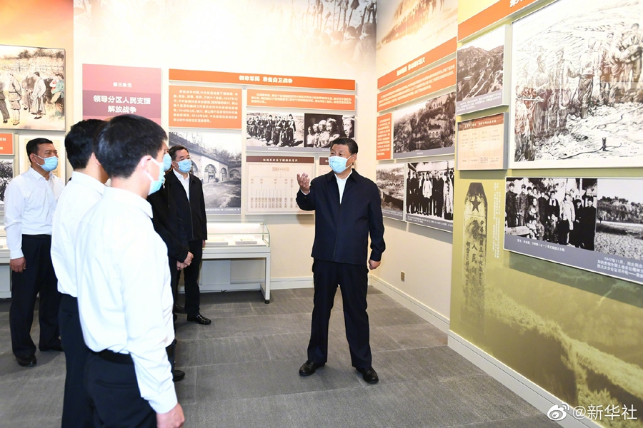 習(xí)近平總書記14日在榆林市綏德縣考察調(diào)研。他先后來到中共綏德地委舊址、綏德實(shí)驗(yàn)中學(xué)、綏德縣非物質(zhì)文化遺產(chǎn)陳列館、張家砭鎮(zhèn)郝家橋村,圍繞弘揚(yáng)黨的光榮傳統(tǒng)和優(yōu)良作風(fēng)、促進(jìn)學(xué)生全面發(fā)展與健康成長、推進(jìn)傳統(tǒng)文化保護(hù)與傳承、全面推進(jìn)鄉(xiāng)村振興等實(shí)地調(diào)研。(文字記者:張曉松、朱基釵;攝影記者:李學(xué)仁、謝環(huán)馳、燕雁)