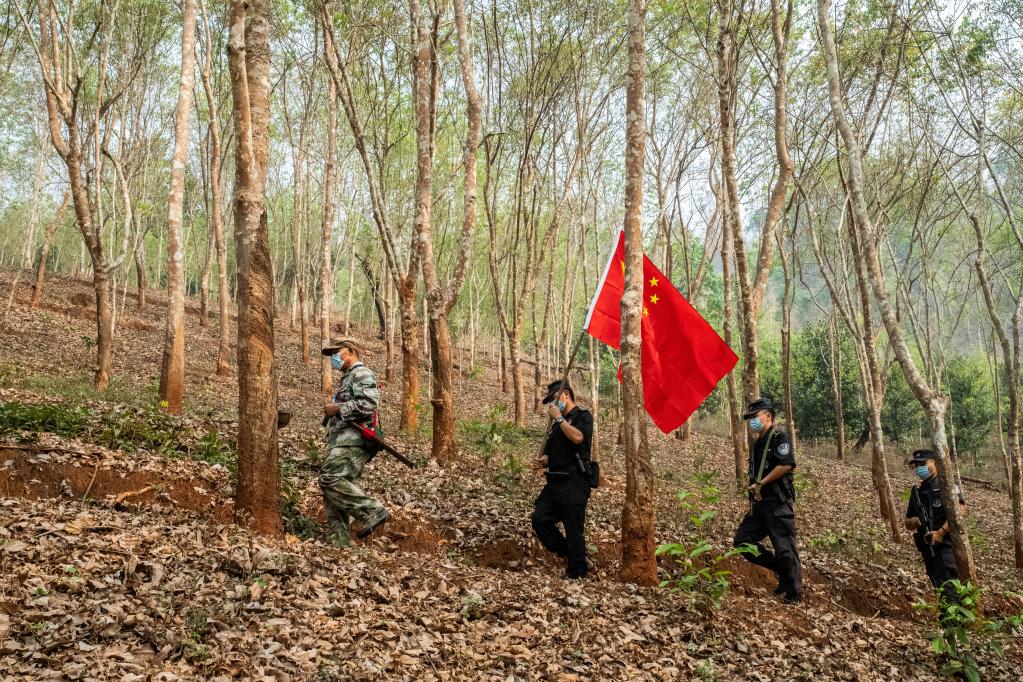 日前,記者跟隨段二文等人,走了一段他認(rèn)為很普通的巡邊路。當(dāng)天,熟悉路況的段二文走在最前面,遇到不好通過(guò)的地方,他拿著砍刀幾下就清除了障礙。隨后穿越一片橡膠林,經(jīng)過(guò)一條用來(lái)區(qū)分國(guó)境線的石板路,抵達(dá)最終的目的地——S144-2號(hào)界樁。