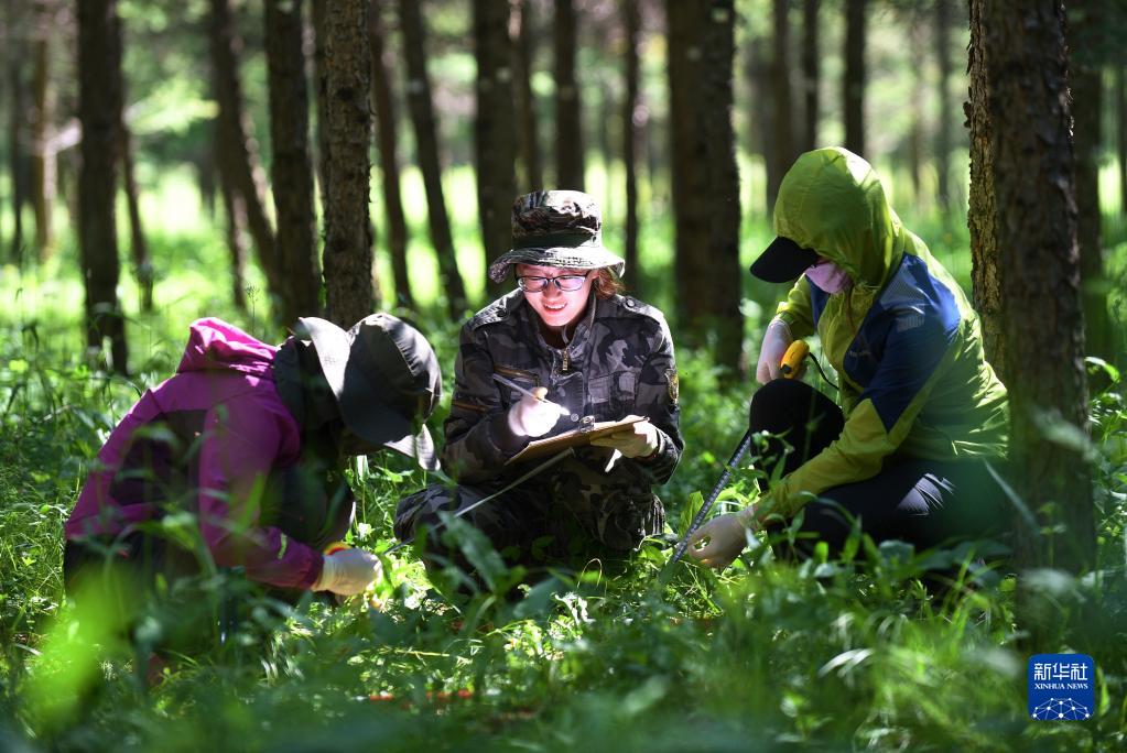 工作人員在河北塞罕壩機(jī)械林場(chǎng)采集數(shù)據(jù)(2017年7月12日攝)。新華社記者 王曉 攝