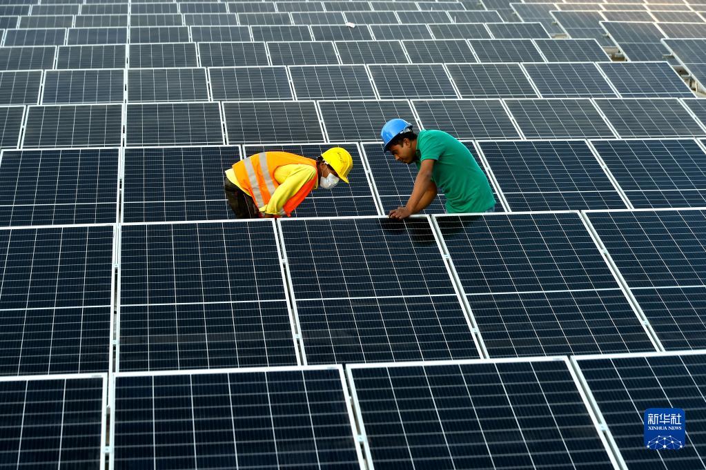 2021年1月3日,在位于孟加拉國(guó)首都達(dá)卡郊區(qū)的利德成集團(tuán)廠區(qū),工人們?cè)诜宽斀M裝光伏模組。從2020年開(kāi)始,中資制衣類企業(yè)——利德成集團(tuán)在其位于孟加拉國(guó)達(dá)卡的廠區(qū)內(nèi)建設(shè)光伏電站,以降低對(duì)傳統(tǒng)能源的依賴,減少碳排放,從綠色發(fā)展的角度助力“一帶一路”建設(shè)。新華社發(fā)