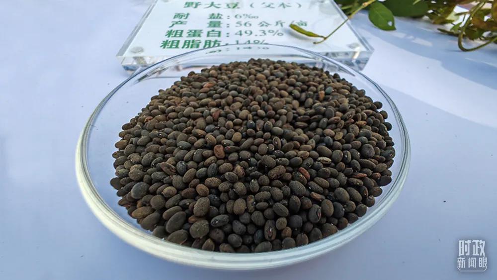 △示范區(qū)的野大豆,個頭如同大米粒般,是耐鹽糧食作物。(總臺央視記者彭漢明拍攝)