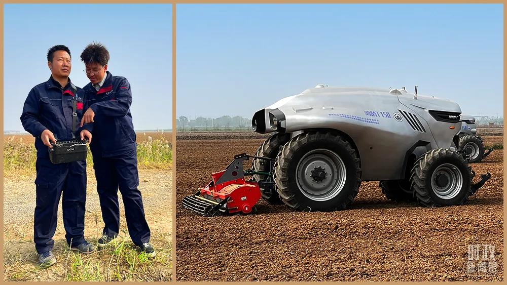 △農(nóng)高區(qū)的科研人員遙控操作智能農(nóng)機。(總臺央視記者趙化拍攝)