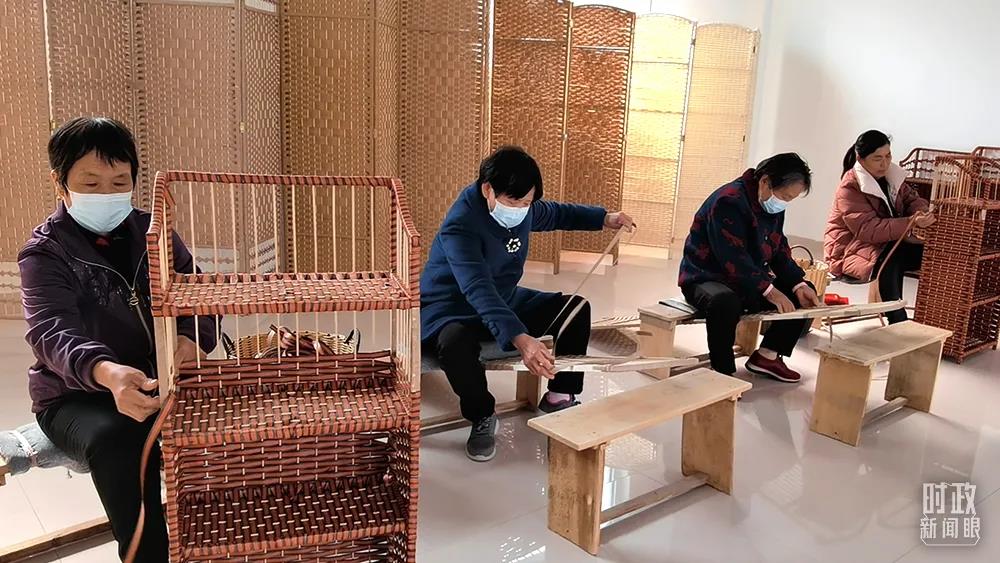 △楊廟社區(qū)成立草編合作社,老年人通過手工編織屏風(fēng)、鞋架等實現(xiàn)在家門口就業(yè)。(總臺央視記者楊松濤拍攝)