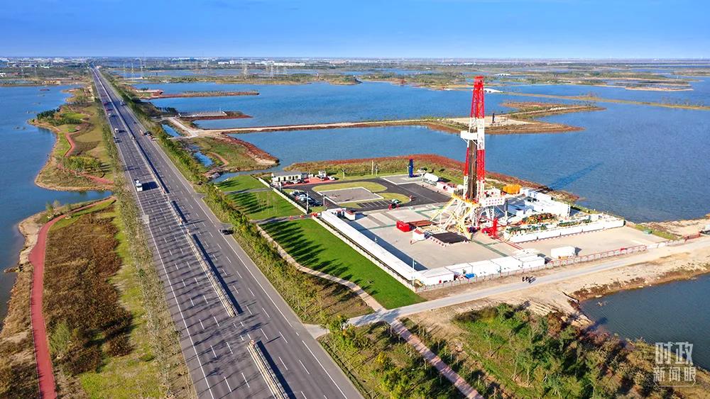 △勝利油田萊113區(qū)塊的鉆井平臺。(總臺央視記者郭曉龍拍攝)