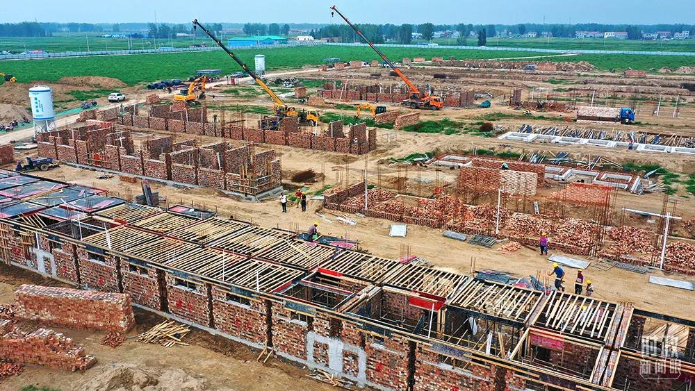 △2019年8月,菏澤市東明縣焦園鄉(xiāng)灘區(qū)遷建8號村臺,施工人員正緊鑼密鼓為灘區(qū)百姓建設(shè)新家園。(圖/視覺中國)