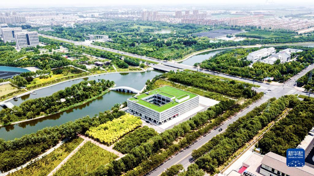 這是2018年6月24日拍攝的山東省東營市墾利區(qū)城市景色(無人機照片)。新華社記者 吳剛 攝