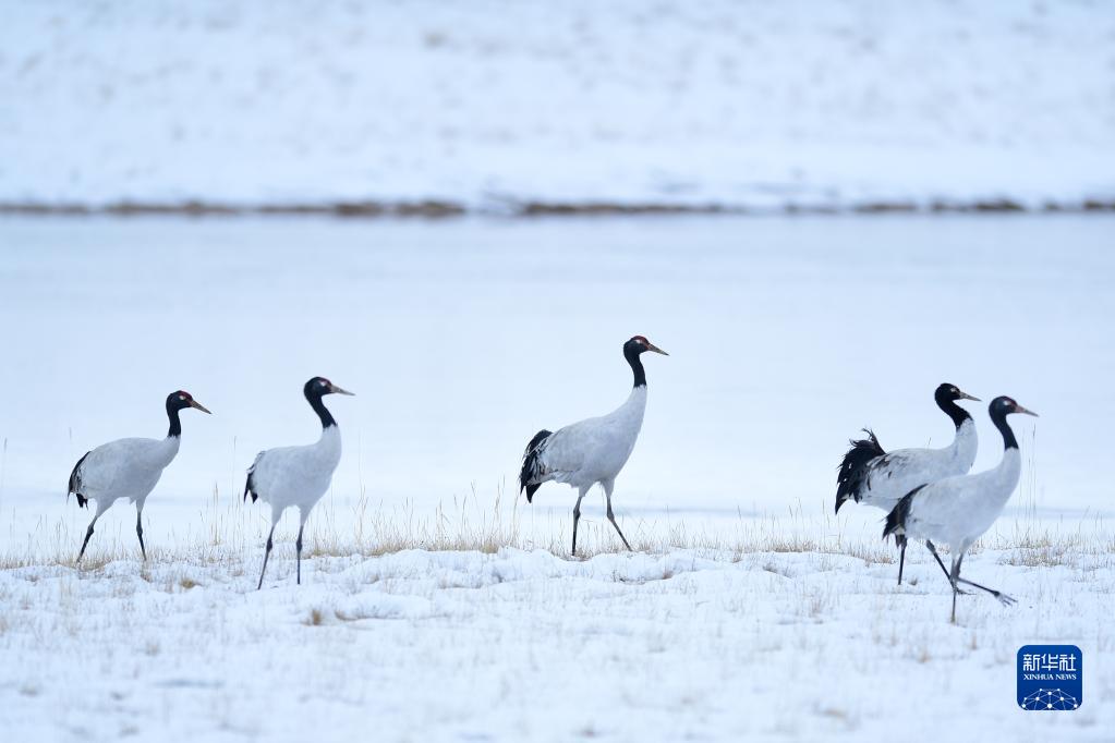2021年10月21日在位于青海省的三江源國家公園黃河源園區(qū)內(nèi)拍攝的黑頸鶴。新華社記者 張龍 攝