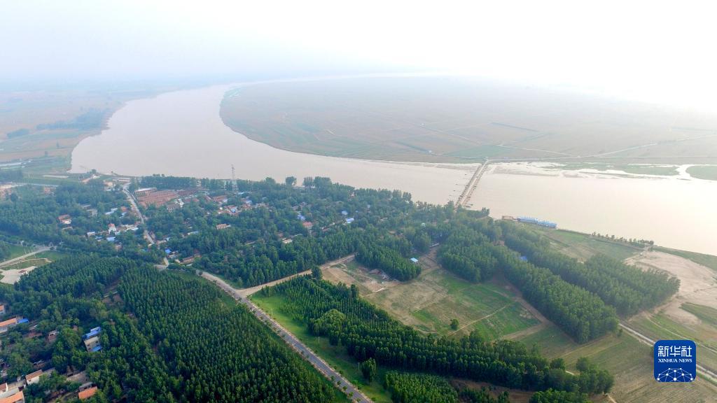 河南省蘭考縣東壩頭鄉(xiāng)拍攝的黃河河道(2018年6月19日攝,無人機照片)。新華社記者 馮大鵬 攝