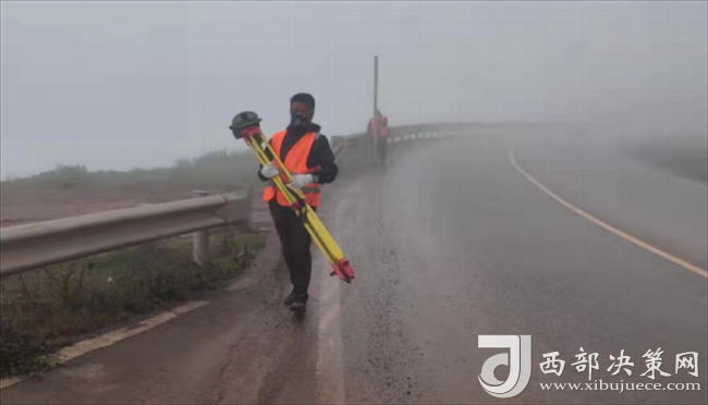 在進(jìn)行二等水準(zhǔn)測(cè)量時(shí),進(jìn)出口聯(lián)測(cè)距離為50千米,不僅要面對(duì)國(guó)道上龐大的車流量,還要面對(duì)盤山路的大坡度、大霧的低能見度、突然來(lái)襲的雨雪天氣以及雨雪過(guò)后的低溫。二等水準(zhǔn)的測(cè)量方式是步行,因?yàn)槭歉咴?,所以體力消耗特別大,山里又沒(méi)有吃飯的地方,大家只能靠隨身攜帶的面包、開水保證體能。然而即使面對(duì)如此困難的環(huán)境,大家依然不忘初心,按時(shí)完成了復(fù)測(cè)任務(wù)。