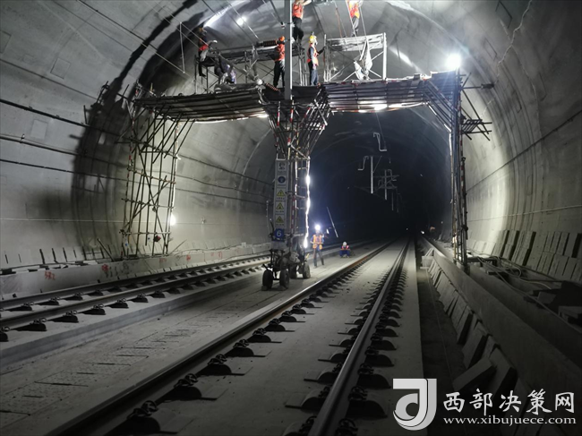 西部決策網(wǎng)訊鄭萬(wàn)鐵路干溪溝隧道全長(zhǎng)11883米,正線雙線隧道設(shè)計(jì),時(shí)速350公里,是鄭萬(wàn)鐵路重慶段控制性重難點(diǎn)工程,隧道于2016年12月開(kāi)工建設(shè)。昨天,記者走訪發(fā)現(xiàn),干溪溝隧道內(nèi)燈火通明,隧道內(nèi)工人們正在忙著清洗隧道、與站后工程的銜接等工作。