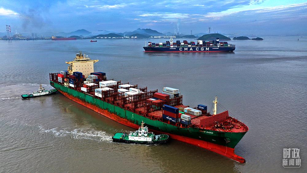 △2021年6月,浙江舟山港。輪載貨物將被運往尼日利亞、馬來西亞、新加坡等“一帶一路”沿線國家。(圖/視覺中國)