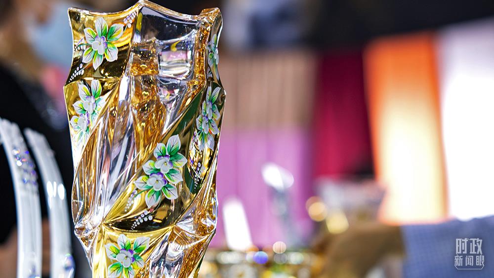 △2021年中國服貿(mào)會,孟加拉國展臺展示的一款玻璃花瓶。(圖/視覺中國)