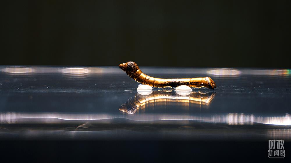 △中國陜西歷史博物館珍藏的千年“鎏金銅蠶”。習(xí)近平總書記曾在2017年“一帶一路”國際合作高峰論壇開幕式上提到,“鎏金銅蠶”見證了古人開辟陸上絲綢之路的歷史。(圖/視覺中國)