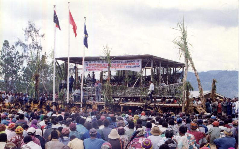 圖為1998年,在巴新的菌草技術重演示范試驗成功現(xiàn)場會現(xiàn)場。(國家菌草工程技術研究中心供圖)