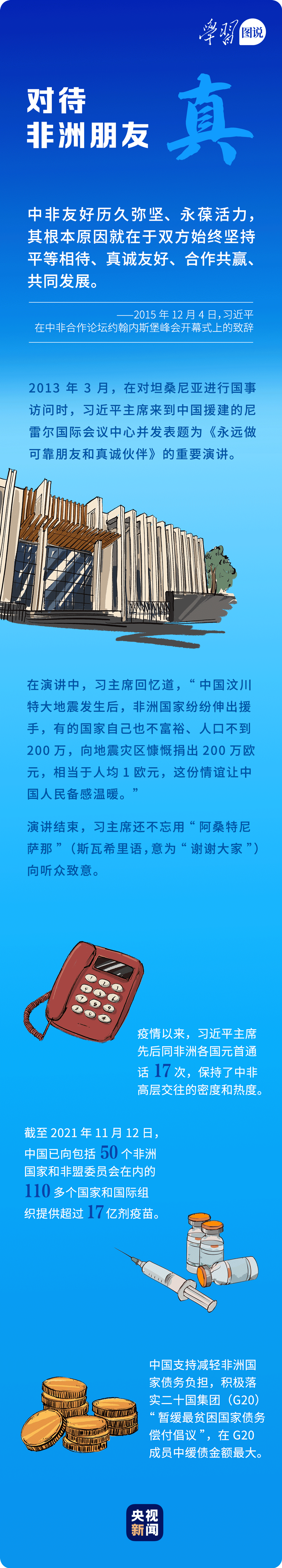 “中國永遠(yuǎn)是非洲的好朋友、好伙伴、好兄弟。”習(xí)近平主席親自推動構(gòu)建更加緊密的中非命運(yùn)共同體,為構(gòu)建人類命運(yùn)共同體樹立典范。