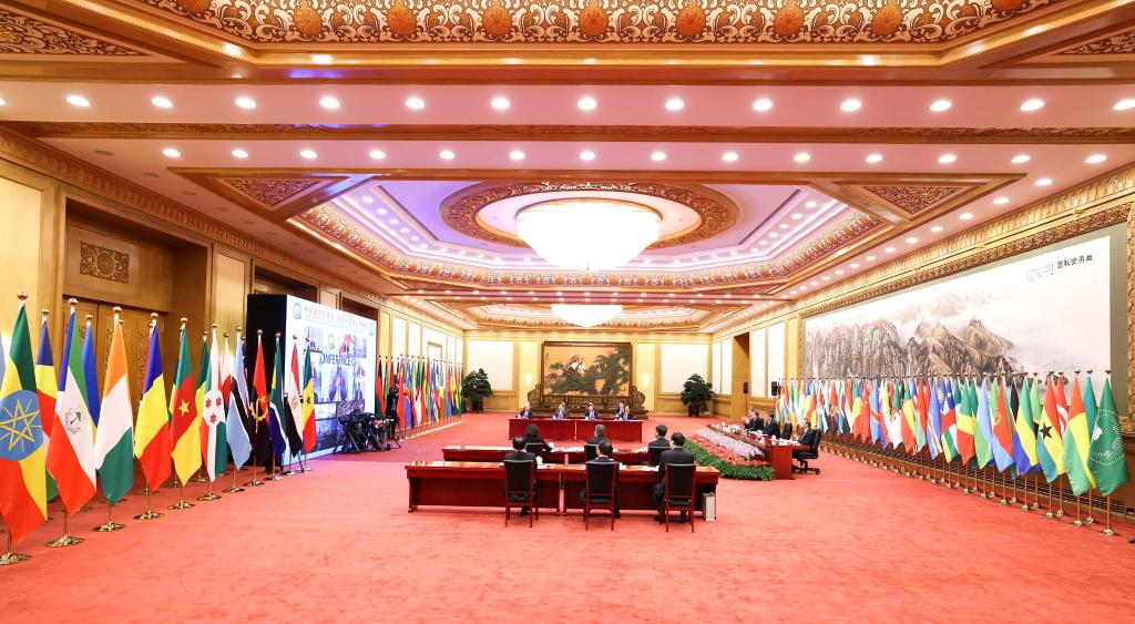 “志合者,不以山海為遠”。29日晚,北京人民大會堂東大廳內(nèi),中國和53個非洲國家國旗以及非洲聯(lián)盟旗幟并排矗立、恢弘大氣,雖是“云端”相聚,但現(xiàn)場洋溢著濃濃情誼,昭示著中非歷久彌堅的友好關系。