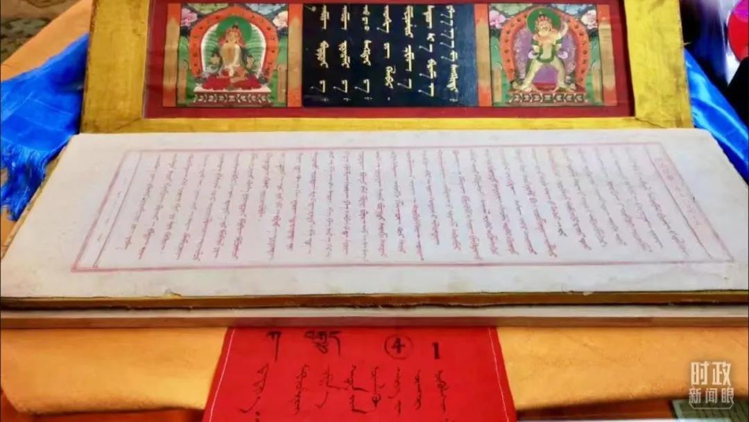 △《甘珠爾經(jīng)》是研究佛學(xué)、哲學(xué)、語(yǔ)言、民族文化交流等方面的重要文獻(xiàn),被稱(chēng)為蒙古文的百科全書(shū)。目前內(nèi)蒙古大學(xué)圖書(shū)館珍藏的版本,是世界上最完整的版本。(總臺(tái)央視記者張曉鵬拍攝)