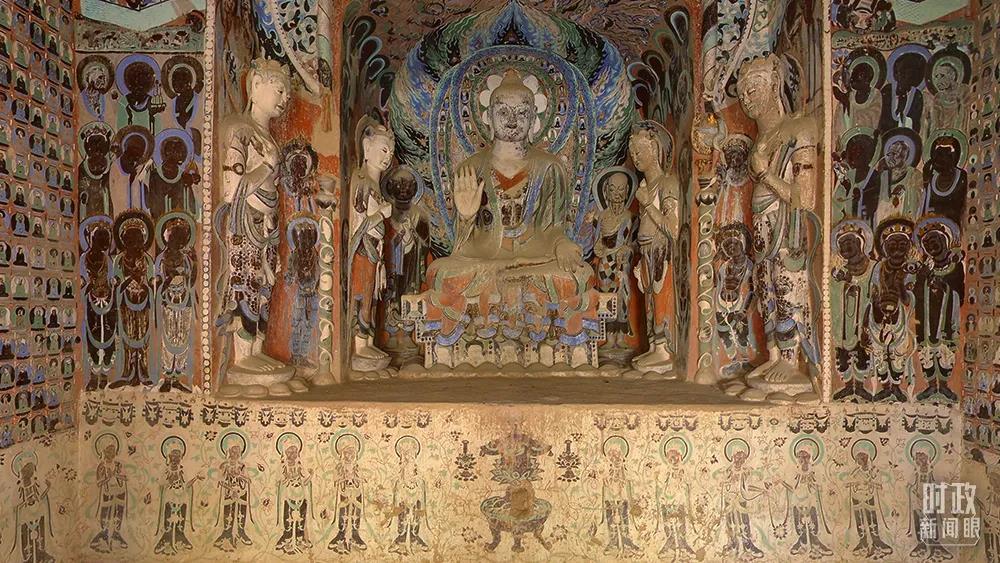 △敦煌莫高窟第420窟,創(chuàng)建于隋,南、西、北壁各開(kāi)一龕,被稱(chēng)為“三龕窟”。敦煌文化被認(rèn)為集建筑藝術(shù)、彩塑藝術(shù)、壁畫(huà)藝術(shù)、佛教文化于一身。(資料圖)