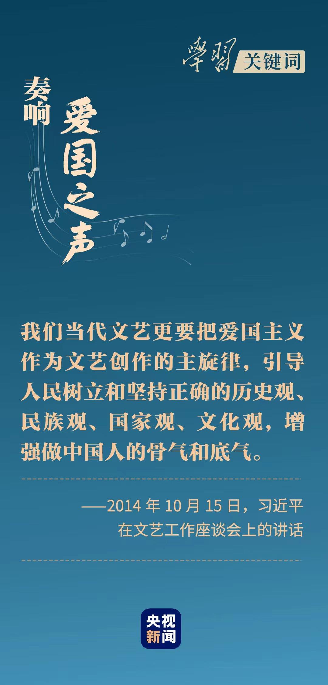 “我們要高揚愛國主義主旋律,用生動的文學語言和光彩奪目的藝術形象,裝點祖國的秀美河山,描繪中華民族的卓越風華,激發(fā)每一個中國人的民族自豪感和國家榮譽感。”