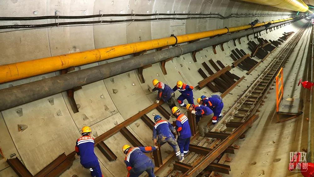 △2021年12月,施工人員在長江盾構(gòu)穿越工程隧道內(nèi)安裝施工道岔。這一工程是中俄東線天然氣管道的“咽喉”項目。(圖/視覺中國)