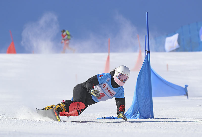 2021年2月17日,運(yùn)動(dòng)員在北京冬奧會(huì)張家口賽區(qū)崇禮云頂滑雪公園訓(xùn)練,備戰(zhàn)2022年北京冬奧會(huì)。
