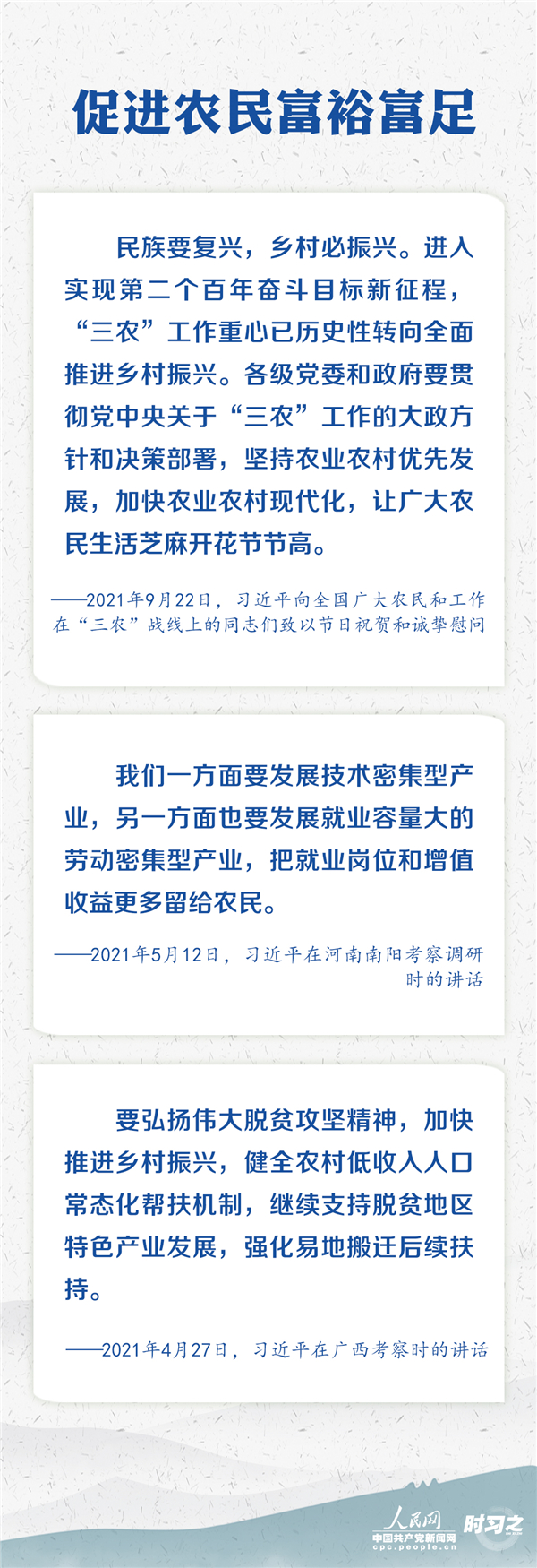 “十四五”開局之年,習(xí)近平赴地方考察調(diào)研及參加座談會(huì)時(shí),多次發(fā)表重要講話、作出重要指示,始終引領(lǐng)著“三農(nóng)”工作的重心與方向。