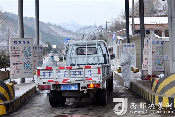 12月26日,寧強(qiáng)縣漢源街道辦工作人員正在黃壩驛檢測點查驗車輛和人員
