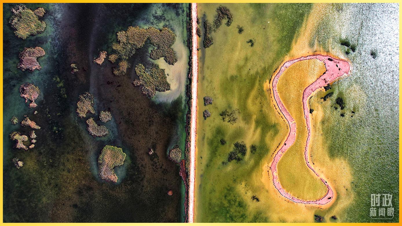 △山東東營,黃河三角洲濕地。植被豐富,色彩斑斕。(總臺國廣記者李晉拍攝)