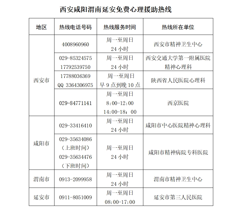 省新冠肺炎疫情醫(yī)療救治心理干預(yù)專家組,組建心理援助熱線工作團(tuán)隊(duì),24小時(shí)為疫情心理求助者提供心理援助服務(wù)。同時(shí),省衛(wèi)生健康委會同省政務(wù)服務(wù)中心在省12320衛(wèi)生熱線開通疫情心理援助熱線專席,依托陜西12345對全省有關(guān)疫情心理干預(yù)的訴求進(jìn)行引導(dǎo)和分轉(zhuǎn)。