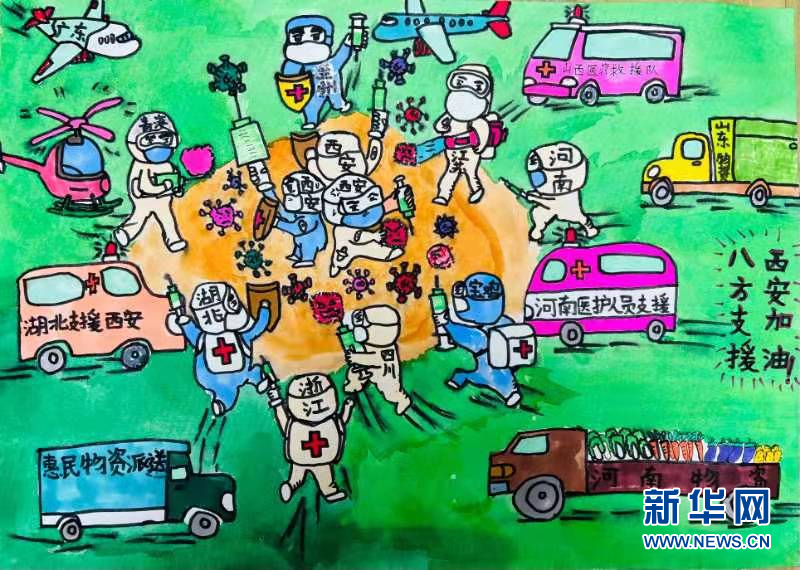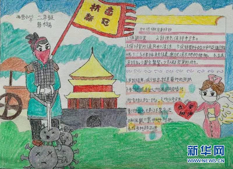 1月2日,西安市鄠邑區(qū)甘亭中心學(xué)校的孩子們用最自己的方式宣傳居家防疫知識,用手中的畫筆表達(dá)他們對抗疫英雄的贊美,為抗疫一線的英雄加油!為西安加油?。◤埶妓?趙影超 王展榮)