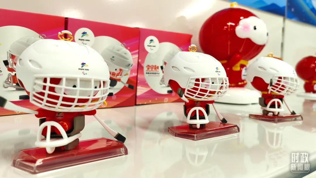 △冬奧村特許商品零售店內(nèi),冬殘奧會吉祥物“雪容融”冰球運動文創(chuàng)產(chǎn)品亮相。(總臺央視記者鐘鋒拍攝)