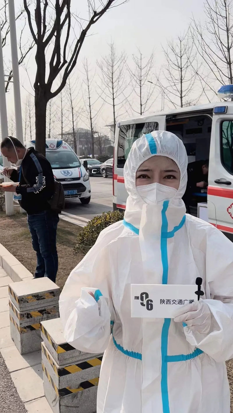 2022年1月3日,陜西廣播電視臺記者范雪在抗疫支援車輛調度指揮部采訪。