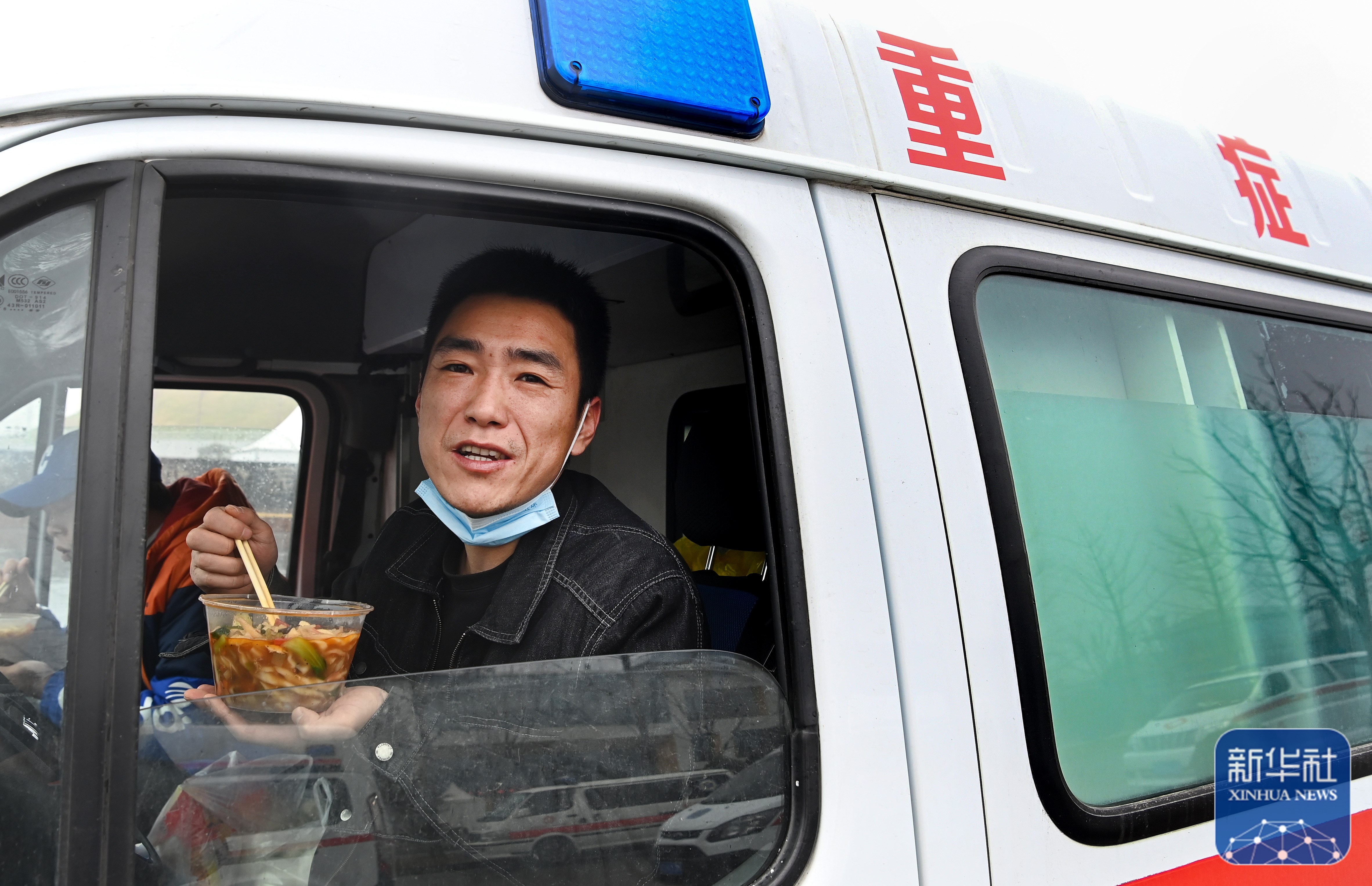 1月8日,來自河南的救護(hù)車司機(jī)吃上“愛心餐”。
