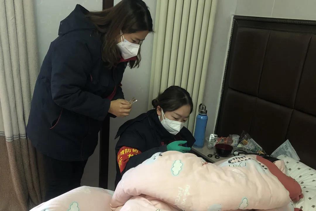 近日,新城區(qū)長(zhǎng)樂(lè)西路電建社區(qū)醫(yī)務(wù)人員與社區(qū)工作者來(lái)到滯留人員賈女士的住處,為她進(jìn)行藥物注射。家在山西運(yùn)城的賈女士2021年12月底獨(dú)自來(lái)到西京醫(yī)院進(jìn)行治療,因疫情滯留在賓館,街道通過(guò)摸排信息后,立刻組織工作人員對(duì)她開(kāi)展幫助,定期上門(mén)核酸采樣,免費(fèi)配送生活物資。