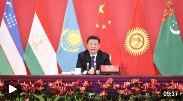 習(xí)近平和五國元首一起觀看了中國同中亞國家關(guān)系發(fā)展中歷史性瞬間的視頻,在熱烈、隆重、友好的氣氛中共同總結(jié)經(jīng)驗,展望未來。習(xí)近平發(fā)表題為《攜手共命運 一起向未來》的重要講話。