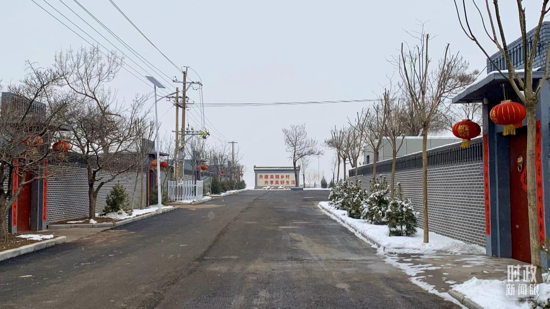 △馮南垣村修繕一新的大路,遠(yuǎn)處的標(biāo)語寫著“共建美麗鄉(xiāng)村 共享美好生活”。(總臺(tái)央視記者馬超拍攝)