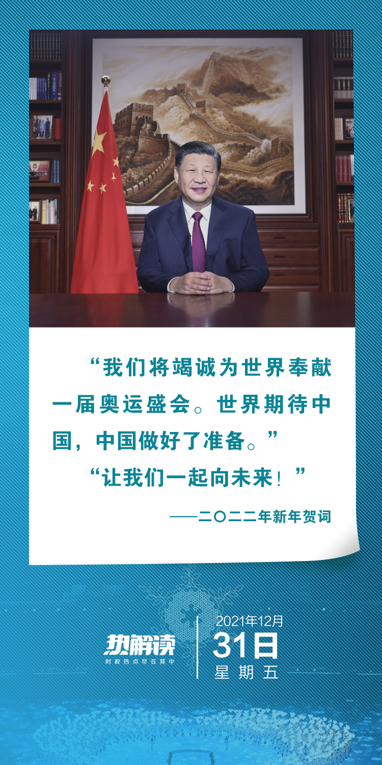 辭舊迎新之際,習近平主席在二〇二二年新年賀詞中真誠呼吁全世界攜手共創(chuàng)美好未來,同時也為北京2022年冬奧會和冬殘奧會的主題口號“一起向未來”注入深刻內(nèi)涵。