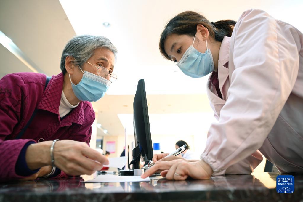 福建省三明市第一醫(yī)院的醫(yī)保辦工作人員(右)向前來咨詢藥品報銷問題的居民講解相關政策(2020年11月18日攝)。 新華社記者 姜克紅 攝