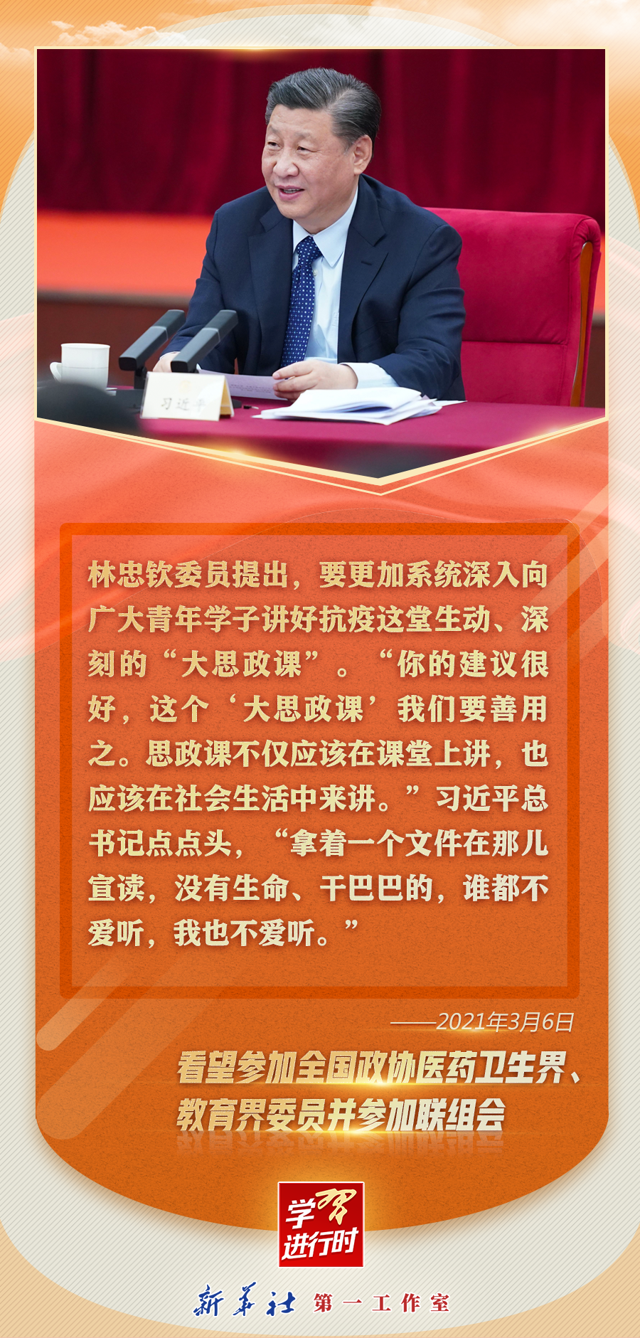 ——2021年3月6日,在看望參加全國政協(xié)十三屆四次會議的醫(yī)藥衛(wèi)生界、教育界委員并參加聯(lián)組會時的講話