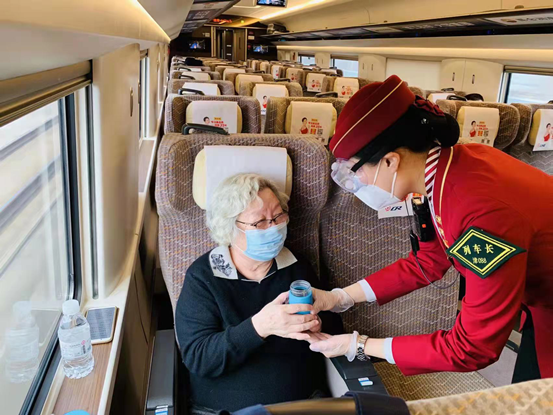 前一天晚上十一點(diǎn)半,剛剛退乘的付婷婷接到了為馳援上海臨時(shí)加開醫(yī)護(hù)人員專列的值乘任務(wù),她沒有片刻遲疑,越是艱險(xiǎn)越是向前。凌晨5點(diǎn),天蒙蒙亮,她就早早起來收拾出乘可能用到的各種物品,第一時(shí)間趕到單位,為運(yùn)送援滬醫(yī)療隊(duì)做好了各項(xiàng)準(zhǔn)備。“無論是我一直值乘的G5還是現(xiàn)在臨時(shí)加開的G267,都走京滬線,從2012年到2022年,從23歲到33歲,我一直往返京滬間,值乘4300余趟,里程達(dá)560萬公里,相當(dāng)于繞地球140圈,這條線路上有什么特點(diǎn),可能發(fā)生什么情況,我再熟悉不過,所以運(yùn)送醫(yī)療隊(duì)讓我去最合適!”付婷婷自豪地說。