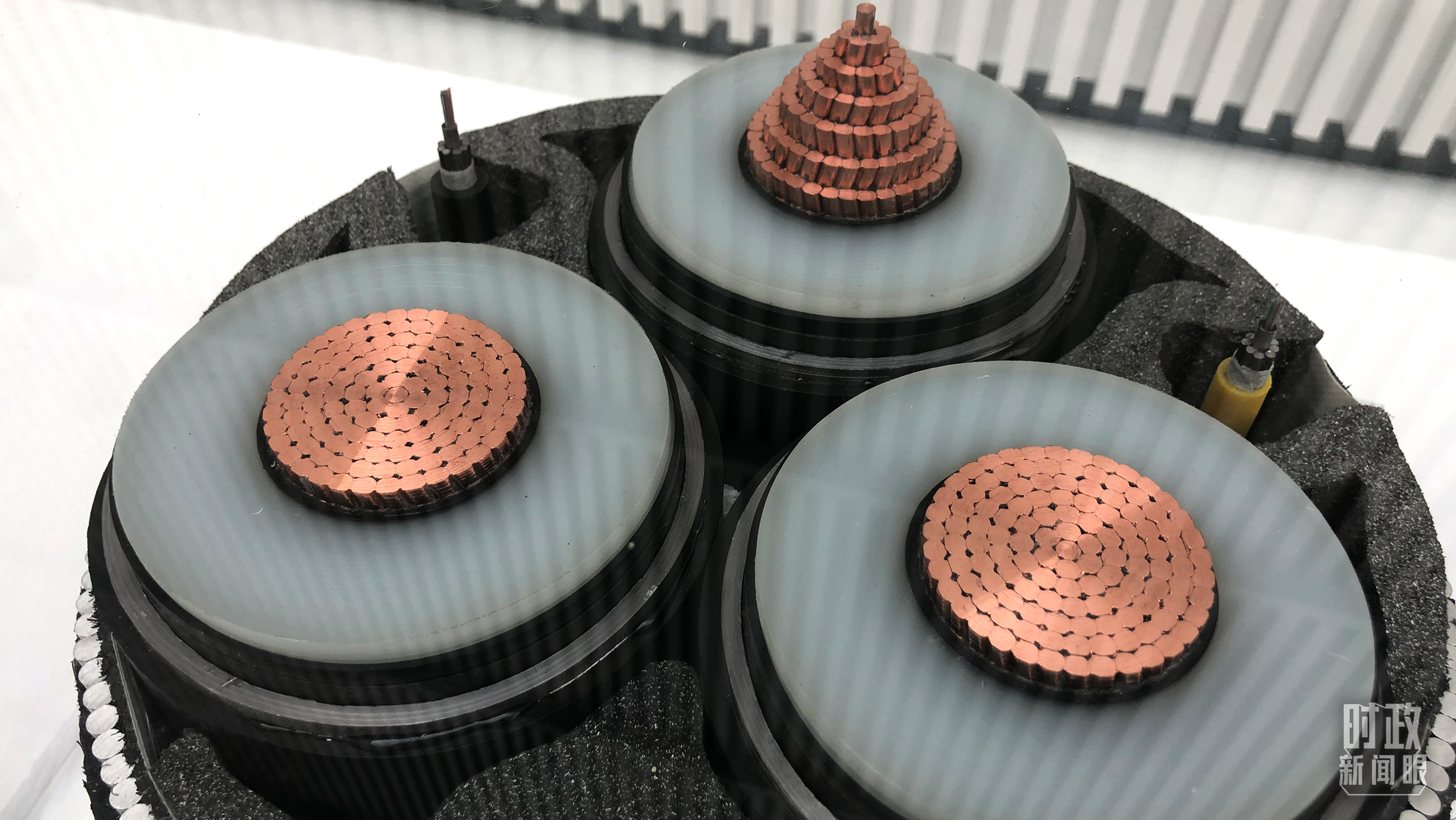 △展示館內(nèi)展出的“海底光電復(fù)合纜”,用于海洋能源互聯(lián),比如海上風(fēng)電集電及輸出。(總臺央視記者許永松拍攝)