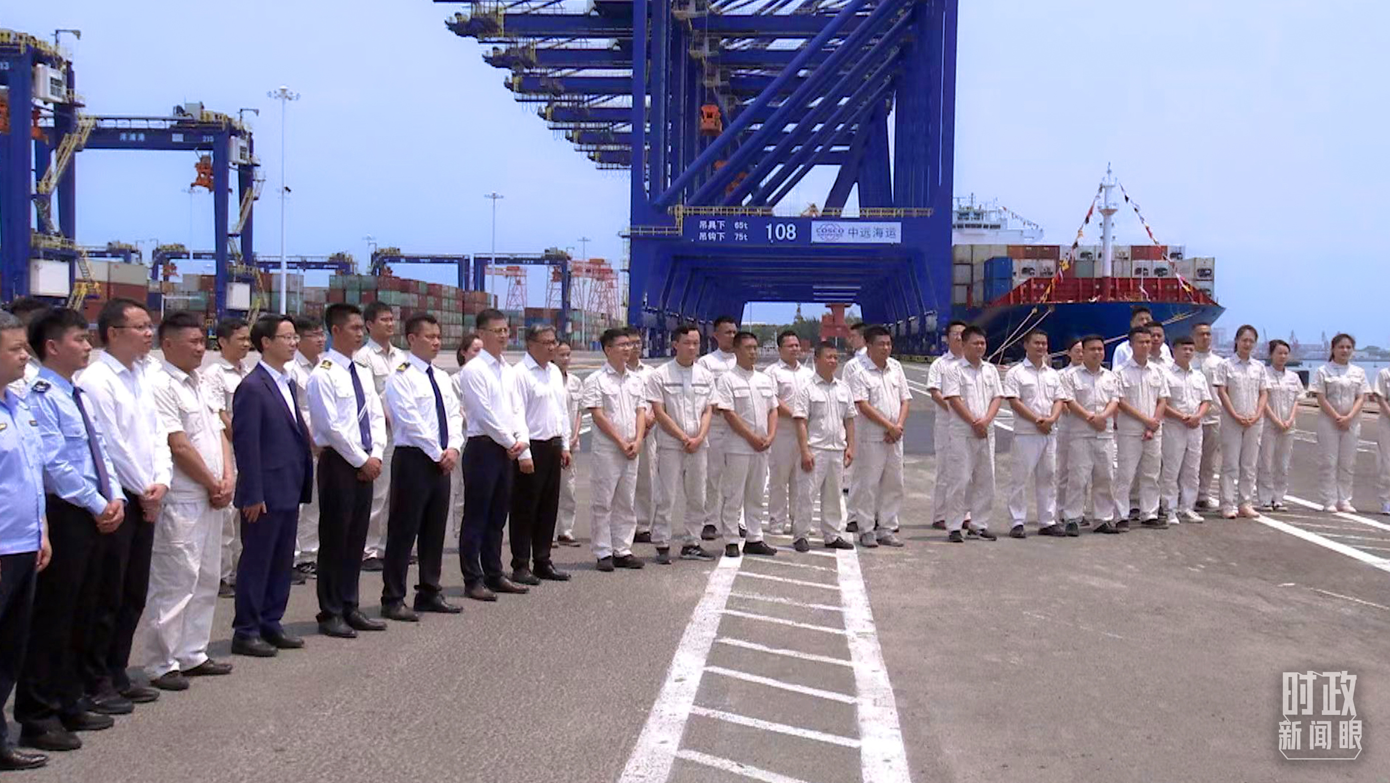 △這是當(dāng)天在小鏟灘港區(qū)的現(xiàn)場作業(yè)人員、掛職干部代表等。(總臺(tái)央視記者馬超拍攝)