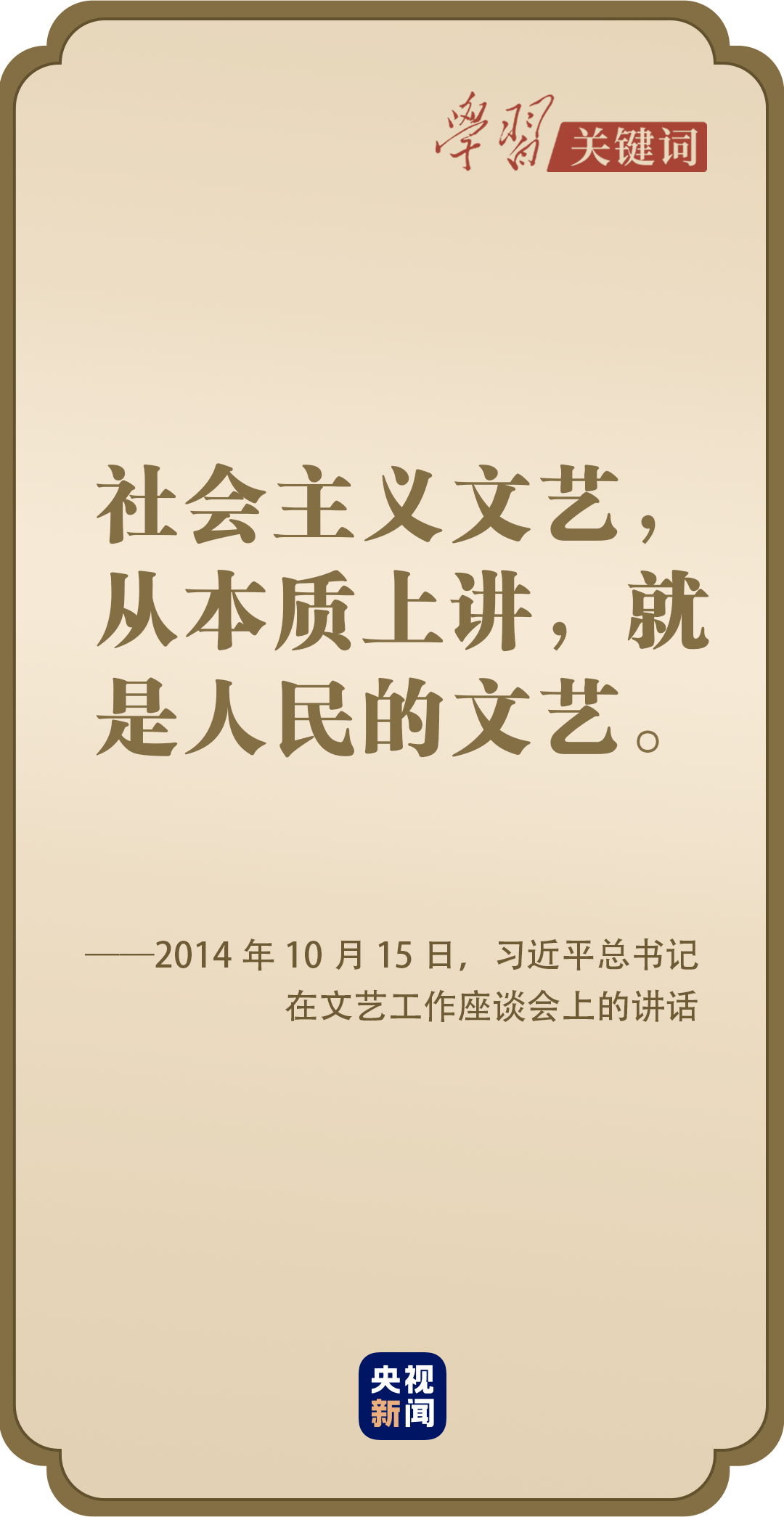 “如果不愛(ài)人民,那就談不上為人民創(chuàng)作。”給內(nèi)蒙古烏蘭牧騎隊(duì)員、中央美院老教授、中國(guó)戲曲學(xué)院師生回信,給耄耋之年入黨的電影表演藝術(shù)家牛犇寫(xiě)信,看望參加全國(guó)政協(xié)會(huì)議的文藝界社科界委員……習(xí)近平總書(shū)記始終強(qiáng)調(diào)廣大文藝工作者要堅(jiān)持以人民為中心的創(chuàng)作導(dǎo)向,把人民放在心中最高位置。
