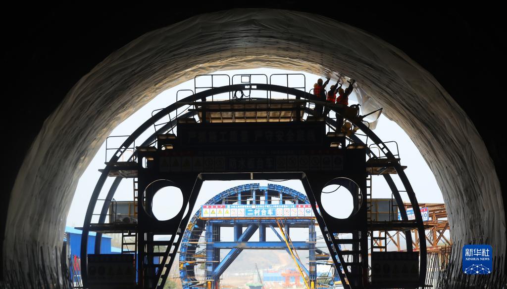 中鐵九局工程技術(shù)人員在撫順市蘭山隧道內(nèi)施工,沈白高鐵全線掀起施工大干熱潮(4月20日攝)。新華社記者 楊青 攝