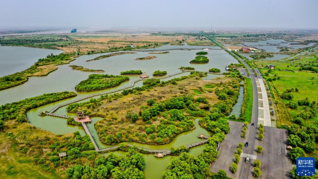 夏日的東營(yíng)市黃河入??跐竦兀G草連天、百鳥翔集。